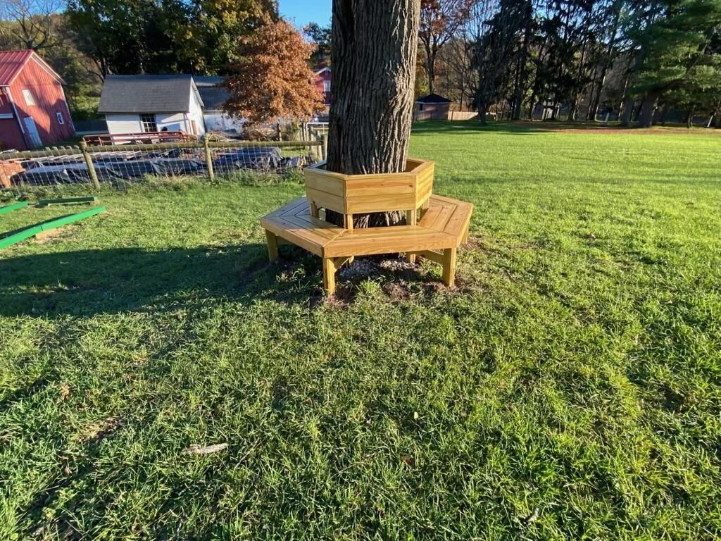 “I helped them move some of their playground equipment over, stripped it and repainted it for them and built a bench around a tree for the parents to watch,” she said.