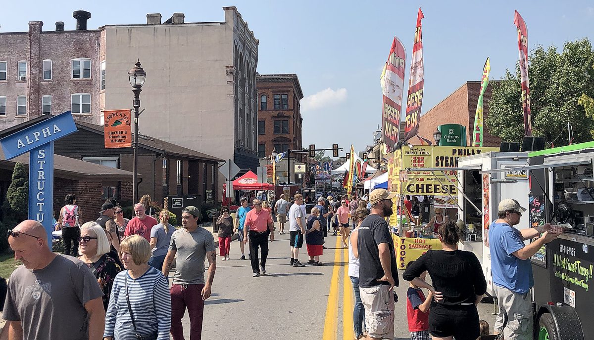 The event, held in downtown Canonsburg, features two entertainment stages: one with authentic German music and the other with more modern tunes.
