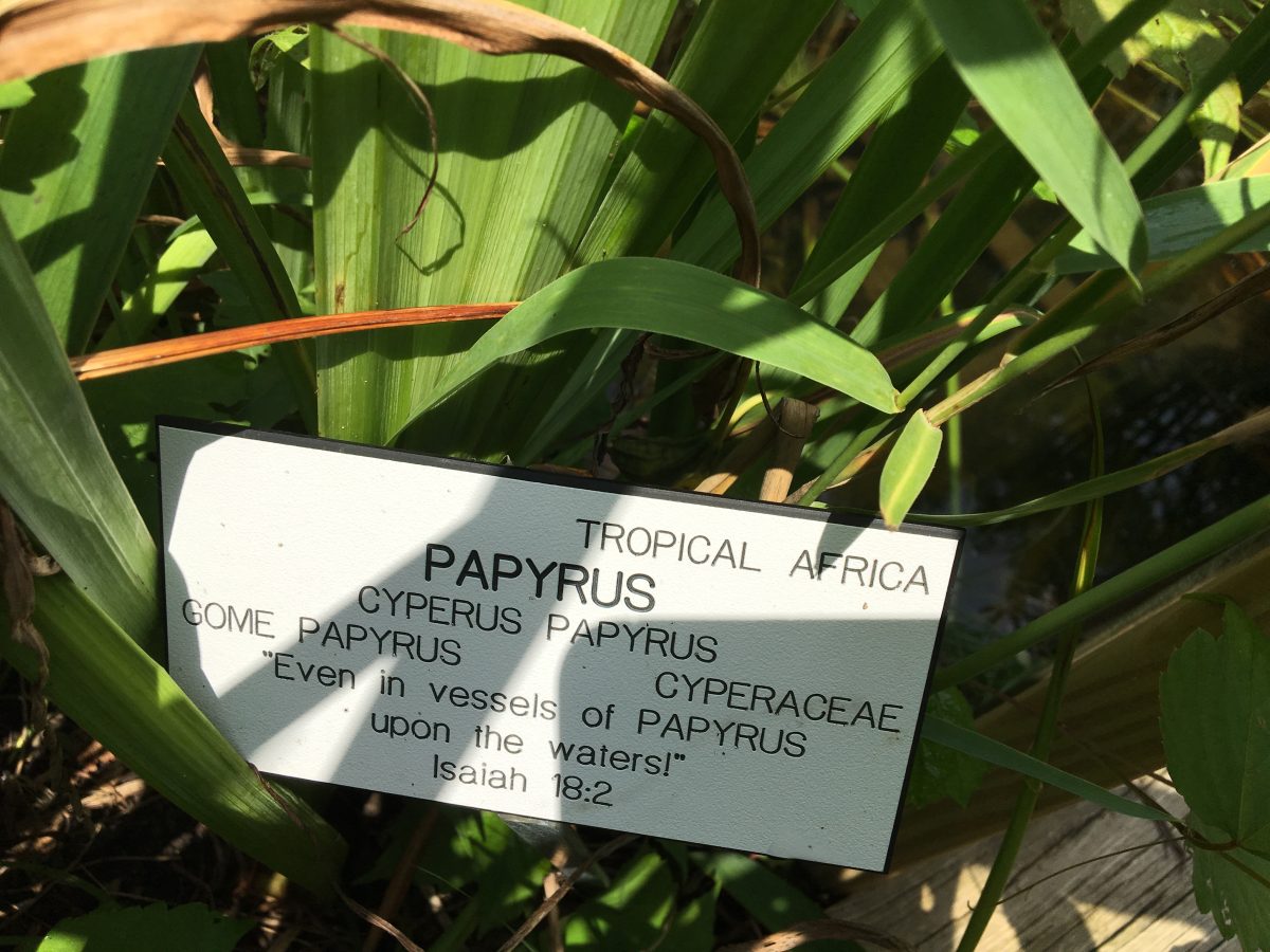“More than 100 plants are mentioned in the Bible,” a placard on display notes. “Each year our garden presents a selection, so the plants which you saw last year may not be presented this year.