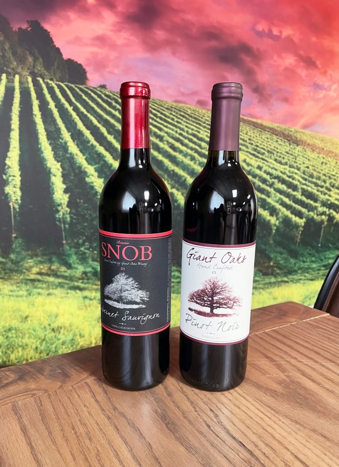 His menu offers eight white and 20 red wines under the Giant Oaks label, named for the Peters Township plan where the couple lives. A handful of the reserve, or higher quality wines, have the “snob” label.