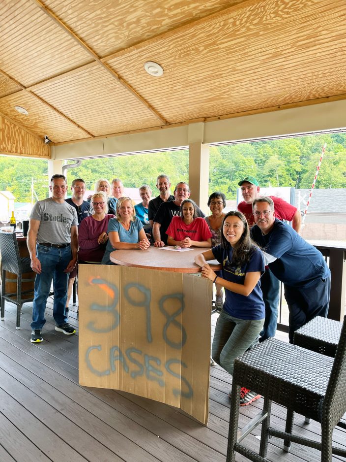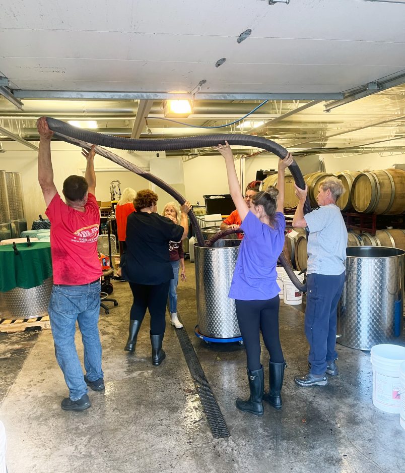 The deck on the back of the building was a haven for guests during the pandemic restrictions. That’s when Judy Spinnenweber and her friend Joyce Pringle, both from Bethel Park, made the deck their Sunday afternoon retreat. The two picked up wine curbside on a Sunday in April 2020, as required at the time. They thought it was good, so they returned the next Sunday, eventually asking if they could sit on the deck to drink it. That was the start of a long-lasting friendship with the Siyufys. Spinnenweber said she always wanted to learn more about wine, and this was better than taking a class.” I was able to experience it, and I just loved it.” She had the opportunity to help with each process: crushing, pressing and bottling over the next few years. “I’ve learned so much about where wine comes from and how different it can be. You can have 10 bottles of merlot, and each of them tastes different. There’s a lot of science that goes into this, more than I realized.”