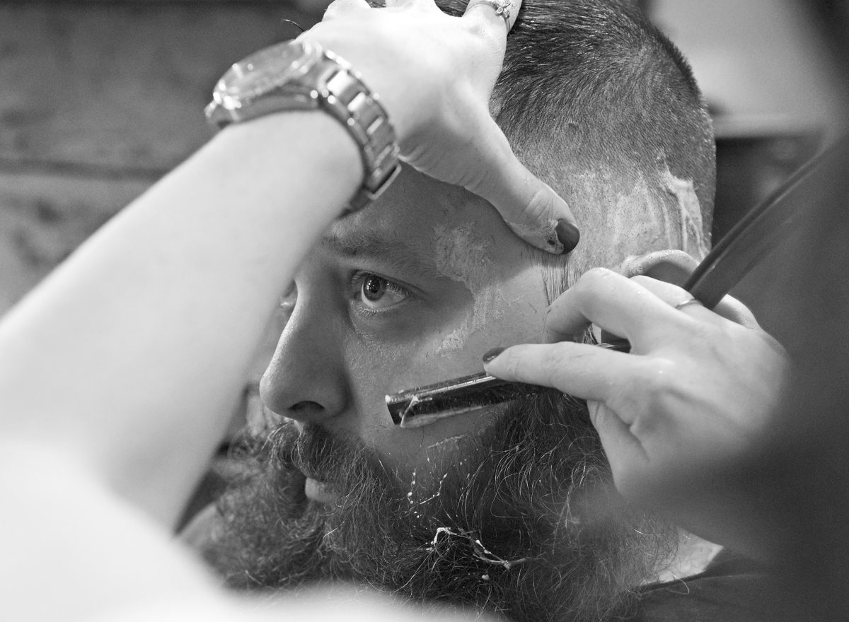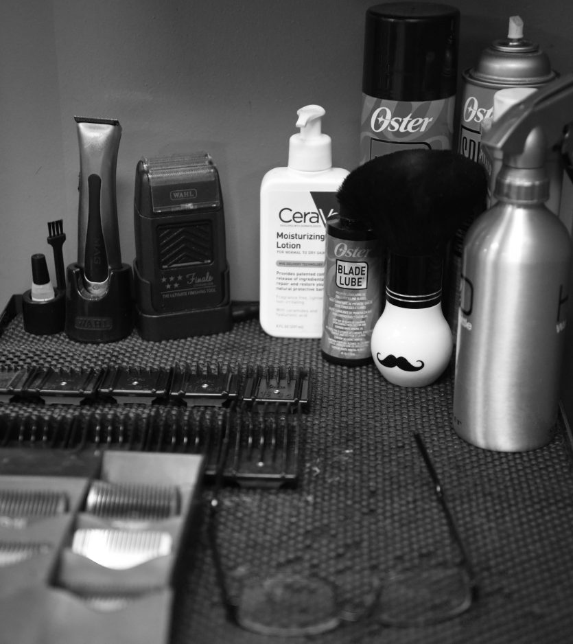 There is a difference between a hair stylist and a barber, and it comes in the schooling with using the straight razor and clippers. Stefan’s clientele is used to that tapered, more technical cut. “They were raised with barbers tapering the hair with a straight razor so they don’t have to shave around the neck,” he explains. “The hard part is the taper from the bottom up into the hair. Stylists don’t know how to do that.”