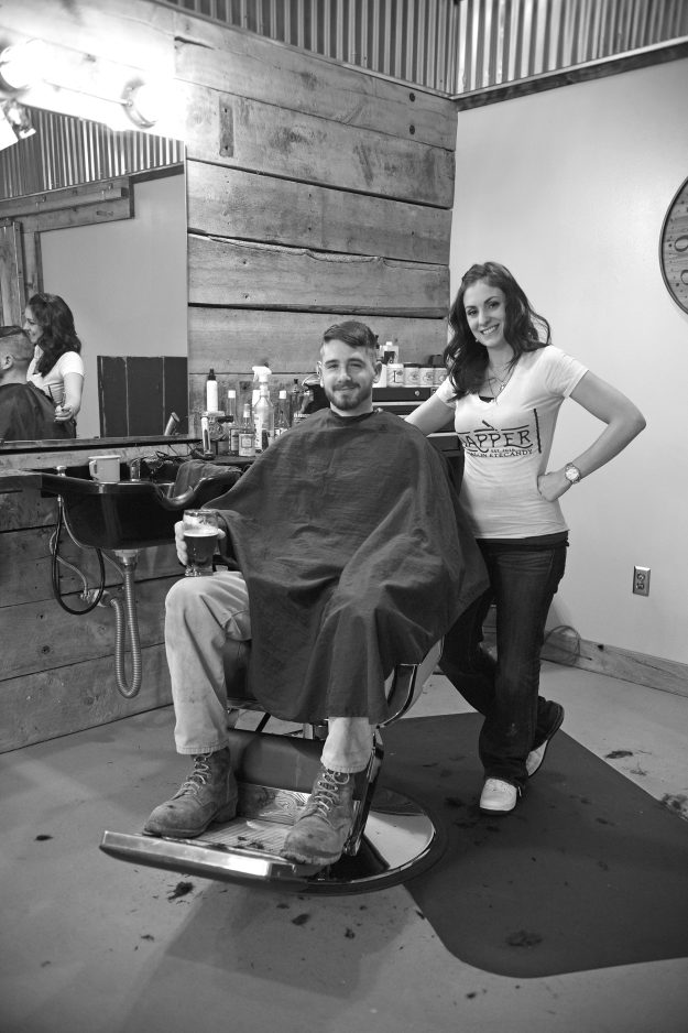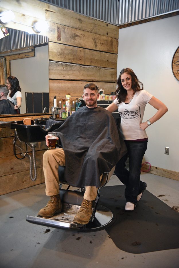 North Belle Vernon also boasts the only female barber in the Mon Valley in Laura D’Emidio, 32, who cuts and shaves customers at Dapper by Salon Eye Candy on Broad Avenue. Dapper also opened last fall specializing in men’s haircuts, mustache and beard trims and other services like waxing, brow shaping and scalp treatments. Hot lather and towels, straight razor shaves, scalp massages and a complimentary glass of beer are also part of the pampering for customers here. D’Emidio has been cutting hair since she was 19, but switched focus to men’s haircuts and shaves four years ago with barber schooling.