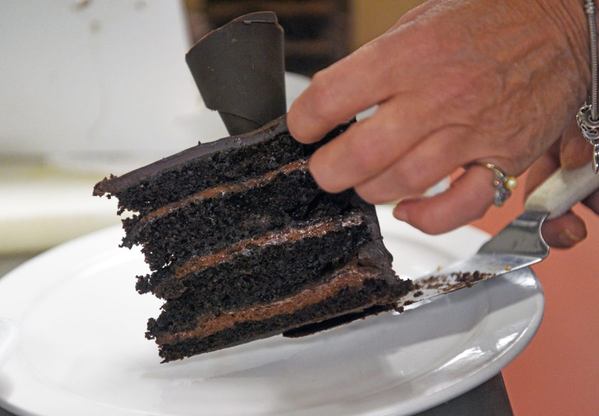 A slice of chocolate cake from Two Fine Caterers – Back Porch owner Patty Keller’s sister, Jamie, runs the catering business.