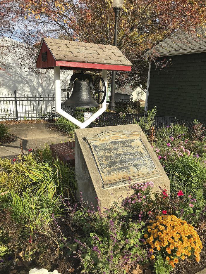 The school bell that rang out in Smithton from 1892 to 1967 stands near the downtown post office.