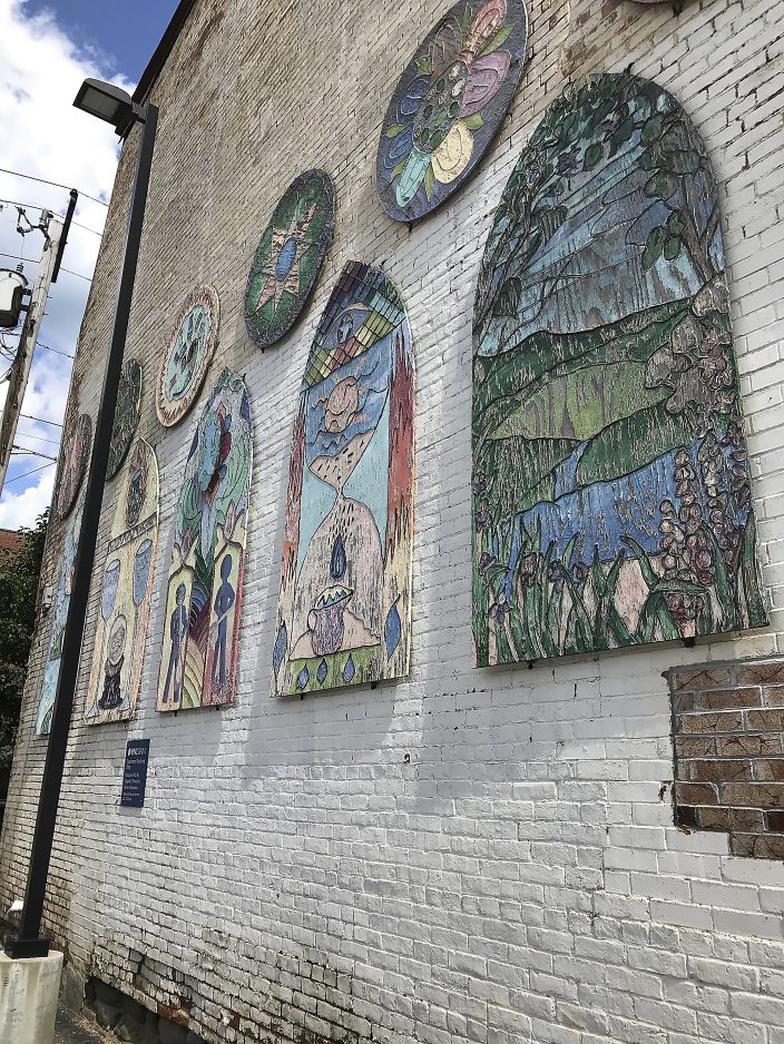 The history and industry of Elizabeth is depicted in renderings on the side of a building in downtown Elizabeth.