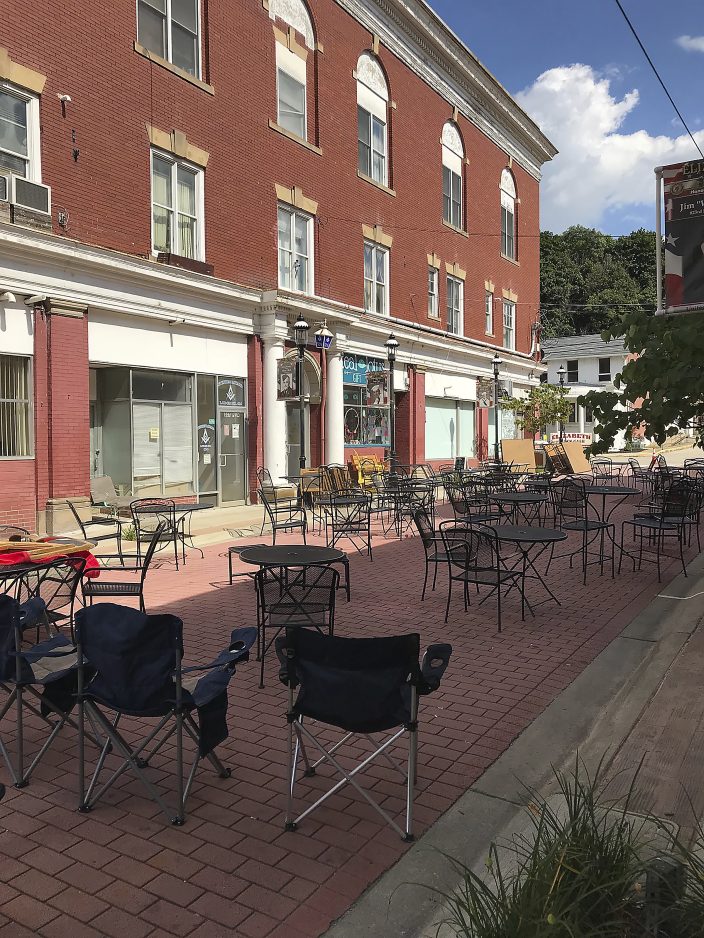 Tables and chairs have been set up outside Rockwell’s Red Lion Restaurant in downtown Elizabeth.