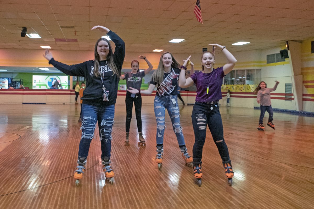 Kirrah Yeardie, Alexis Zenba and Tylie Perok, all eighth-graders from Coal Center, skate at the rink every week. They say their skating skills have improved.