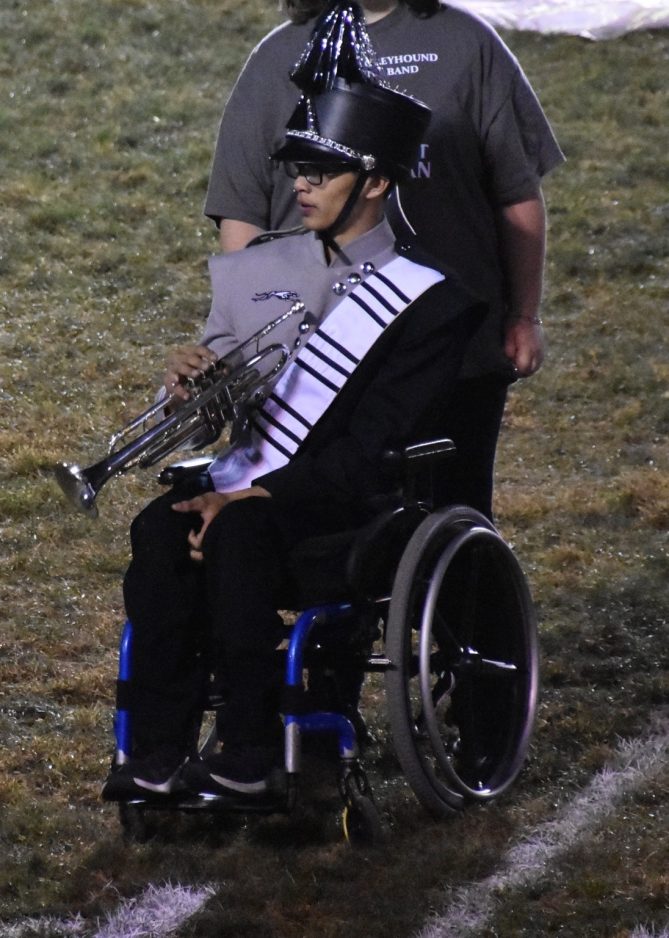 “His seventh and eighth grade years, he decided to stop playing,” Brown said. “I tried for a couple years to get him back to the band program. He just wasn’t sure about the whole marching band thing, especially with him being in a wheelchair.