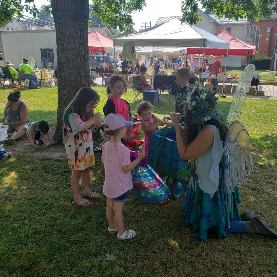 Wanting to touch all the bases, market organizers also provide entertainment for children starting with Whimsy the Fairy, who brings with her a large bubble-making machine, and Levona, a creator of balloon animal figures.