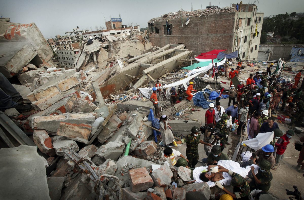 Most of the victims were crushed by massive blocks of concrete and mortar falling on them when the 8-story structure came down Wednesday morning – a time many of the garment factories in the building were packed with workers. It was the worst tragedy to hit Bangladesh’s massive garment industry, and focused attention on the poor working conditions of the employees who toil for $38 a month to produce clothing for top international brands.
