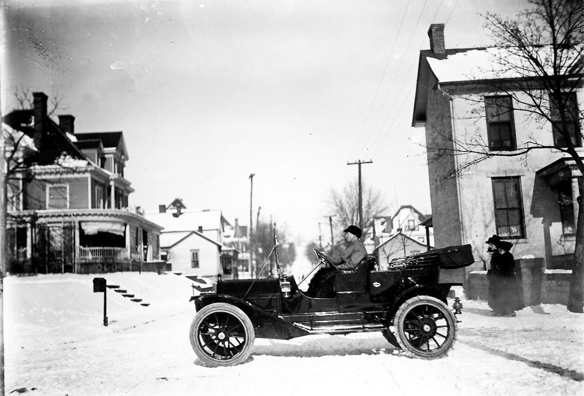 Judge Farley Toothman was the first reader to identify Gordon Wood as the driver and the corner of Richhill and College streets to be the location. He guessed the photo was taken between 1905 and 1910 and named the three women as sisters Mary Denny Weaver, Josephine Denny and Helen Denny Howard.