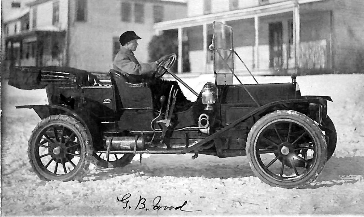 The man driving the car is Gordon Wood. “He worked on cars a lot, and I think the car belonged to Mr. Throckmorton,” Dave Wood said. His grandfather “worked on saw mills, and later in life was county auditor, but mostly he worked on saw mills.”