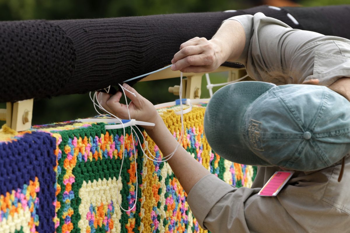 The group ultimately had to work not just with designers but with lawyers, architects, structural engineers and riggers to make the yarn bomb a reality. Roberts said the group decided that the panels would contain only colors and designs – no words or political or religious symbols.