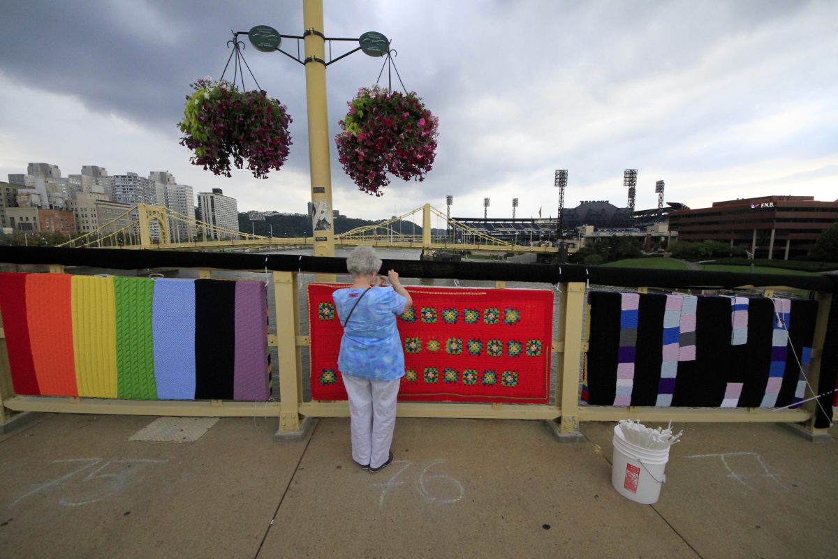 Knitters cover Pittsburgh’s Warhol Bridge in yarn