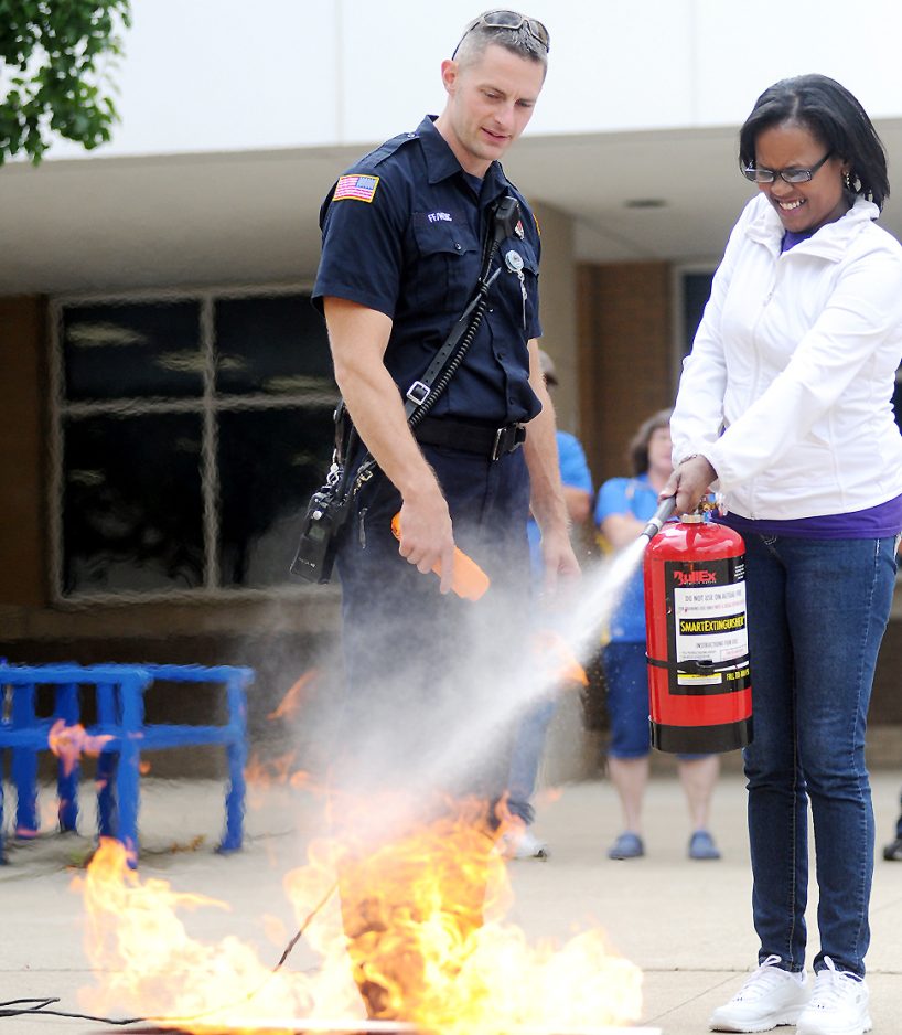 The fire extinguisher training seemed to be the most popular among employees. They had the chance to extinguish a propane-fueled, controlled fire before entering a trailer – designed to look like a kitchen – to put out a simulated stovetop fire.