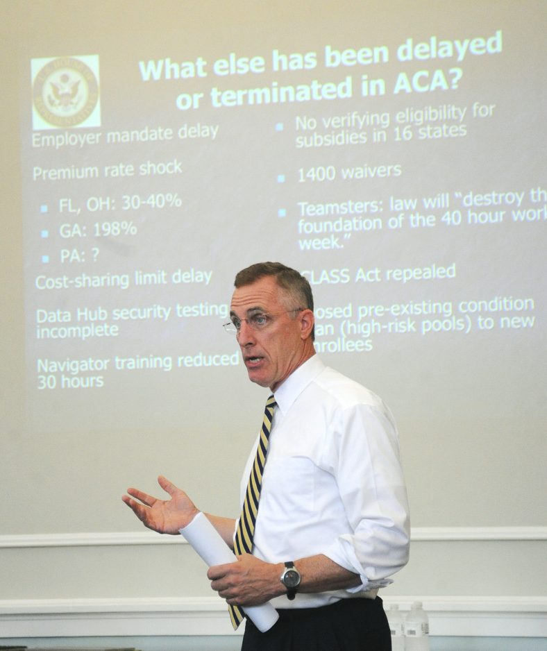 Murphy, a Republican from Upper St. Clair, who told the group that he doesn’t favor the law, spent most of the evening outlining what the Affordable Care Act will mean for everyone from low-income families to small business owners. He said he plans to introduce legislation to de-fund the plan, and also noted that others, including some trade unions, are also wary of its implications and costs.
