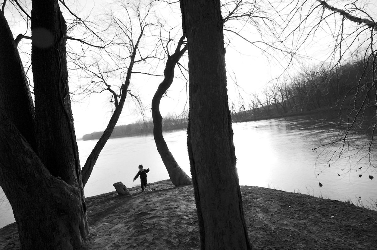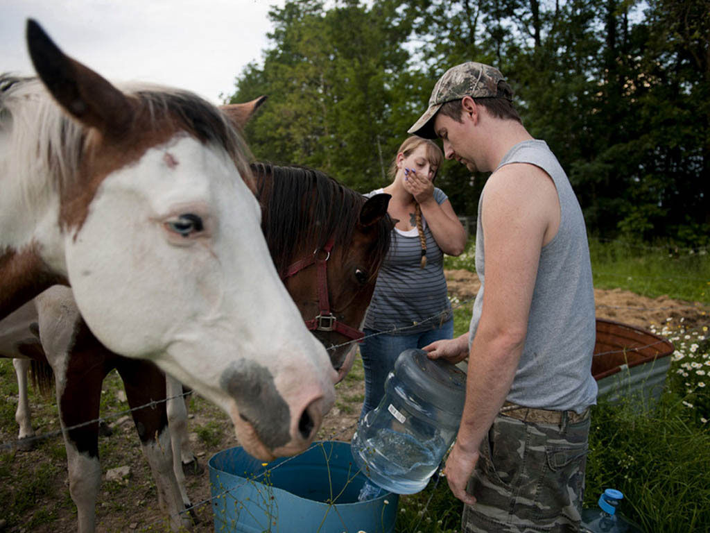 As for the work itself, the images vary greatly in their composition – from stark, close-up portraits of people claiming to have been wronged by drilling, including an Avella woman who suspects contaminated water caused health issues for her family, to gas workers going about their day to sweeping aerial shots of well pads seemingly plopped down in an otherwise untouched wilderness. While some photos feature fiery, flaring wells, others handle the industry’s footprint more subtly, such as one showing the crest of a hill with the horizon lit from beyond by a drilling site. Others, like a shot of a child playing along the Susquehanna River, show no drilling activity at all but bring to mind issues below the ground and in the water.