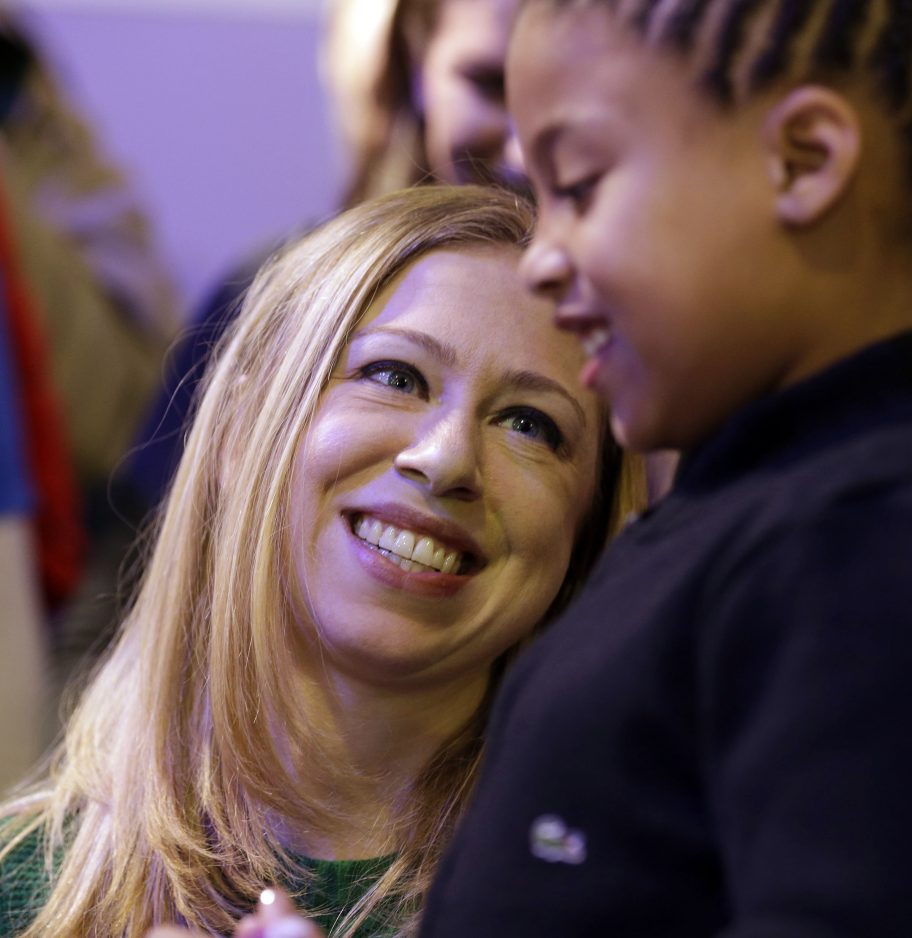 Former first daughter Chelsea Clinton headlined a National Day of Service gathering under a tent on the National Mall, where she said she had been inspired by her grandmother, as well as her famous parents. She urged her audience to become part of a “chain of service” by helping the less fortunate.