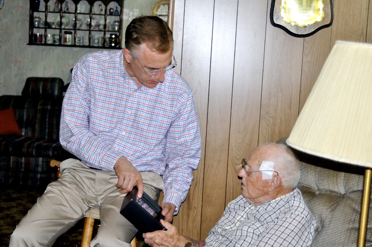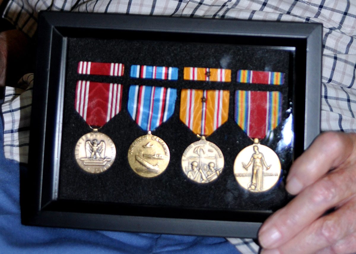 “We wanted to get it to you before the Fourth of July,” Murphy said. “We thought it was fitting.” He went on to explain to Crayne what each medal represented. Crayne received the Good Conduct Medal, American Campaign Medal, Asiatic-Pacific Campaign Medal with bronze star attachment and the WWII Victory Medal.