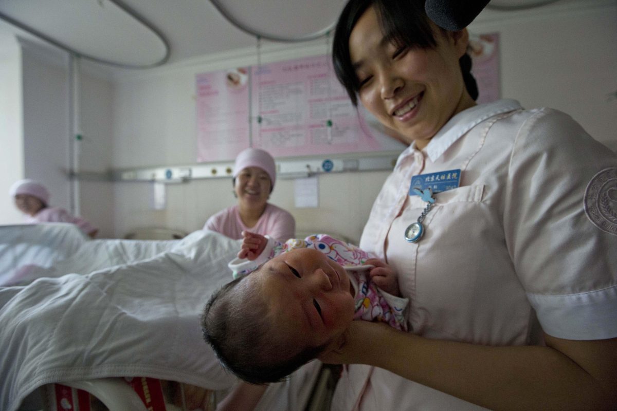 BEIJING – The daughter of Liang Chen and Fan Lina was born in sprawling Tiantan Hospital, where patients lay on cots or mats in the hallway while they wait for care. Public toilets – despite janitors’ best efforts – still reek. The secluded maternal ward, however, is a rosy haven, its walls painted pink and young nurses dressed in the same color.