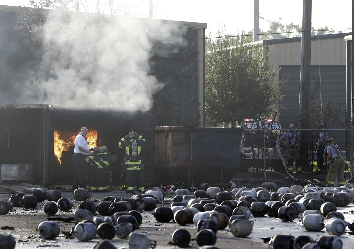 When he went to look outside, there was a fireball about 20-feet-by-20-feet about 100 yards from the plant’s loading dock in an area where the 20-pound propane canisters are stored on plastic pallets.