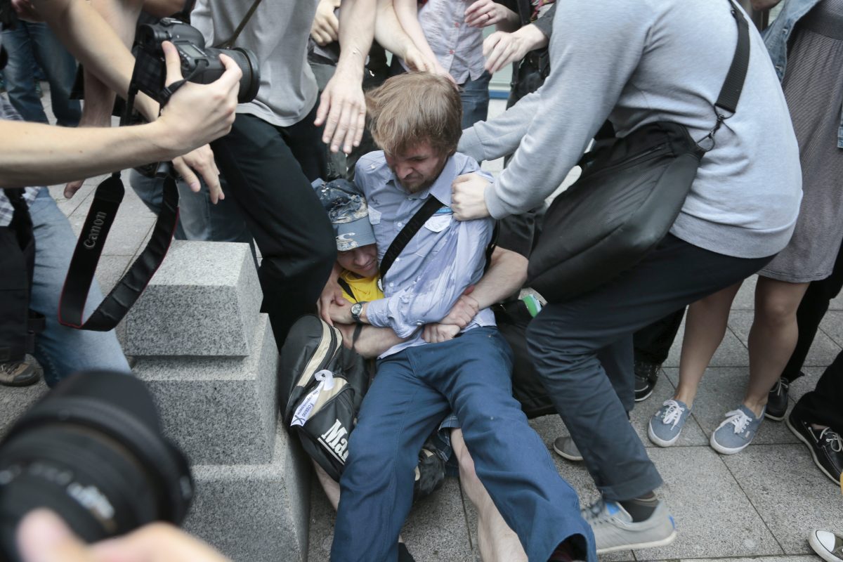 Hours before the State Duma passed the Kremlin-backed law in a 436-0 vote with one abstention, more than two dozen protesters were attacked by hundreds of anti-gay activists and then detained by police.
