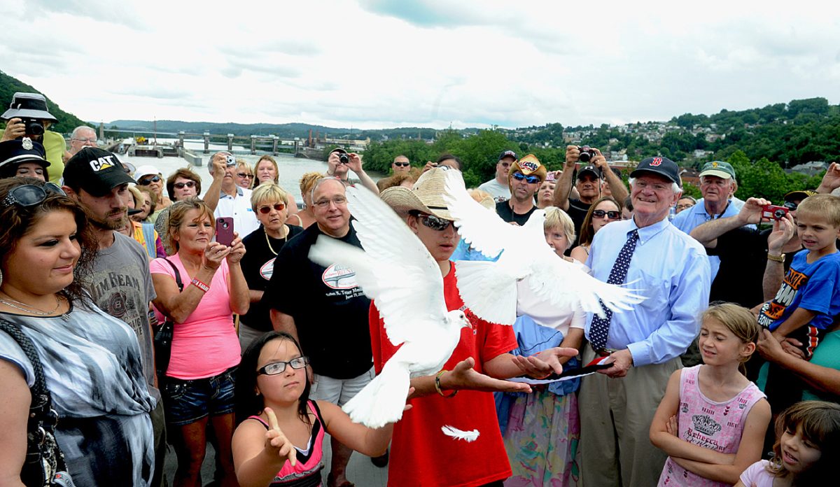Named for the Charleroi luminary who found success as a professional baseball player and the 25th governor of Pennsylvania, the dedication brought out a host of political heavyweights from Washington and Westmoreland counties, which you would expect at an event of this stripe. But it also boasted a few novel elements, such as a wedding that occurred at the bridge’s midpoint, and a release of white doves that saw the winged creatures soaring over the Monongahela River.
