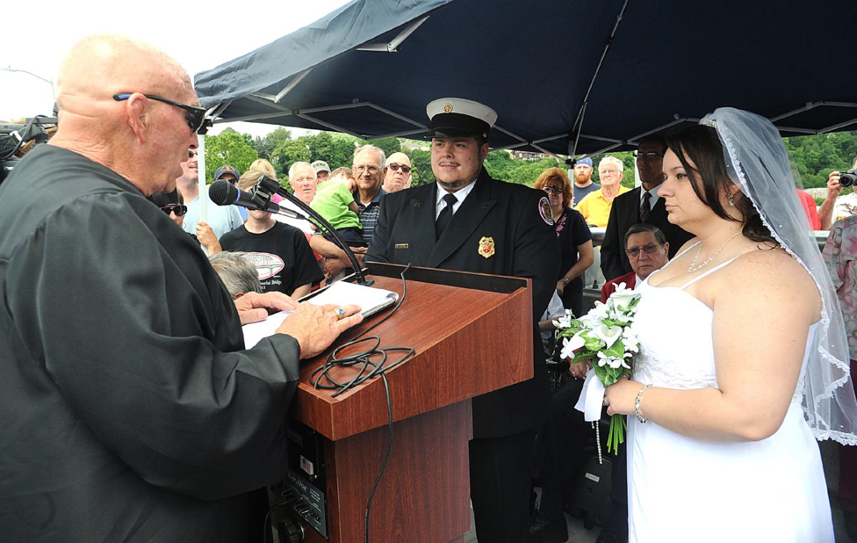 The highlight of the event for many was the wedding ceremony uniting Rebecca Novotne of Monessen with Michael Castner of North Charleroi. A second assistant fire chief for the Lock No. Four Volunteer Fire Company, Castner was decked in a firefighter’s dress uniform while Novotne wore a traditional white wedding gown. Lee Hall, North Charleroi’s mayor, put a black robe over the T-shirt, shorts and tennis shoes he was wearing to conduct the wedding.
