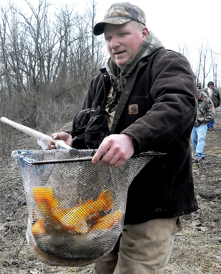 Employees from the Pennsylvania Fish & Boat Commission and a group of volunteers released roughly 3,500 trout into the shallow waters of the lake Friday, much to the delight of local anglers and aquatic enthusiasts.