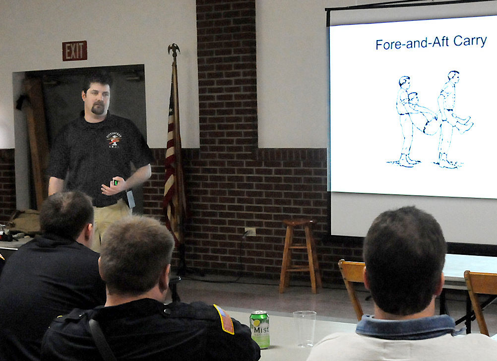 The afternoon session was geared more for police, while the evening session was for emergency medical personnel and firefighters. The instructors were Dr. Micha Campbell, an attending physician for UPMC’s emergency department and assistant medical director for Pittsburgh SWAT, and Dr. Marcus Hoffman, UPMC trauma surgeon.