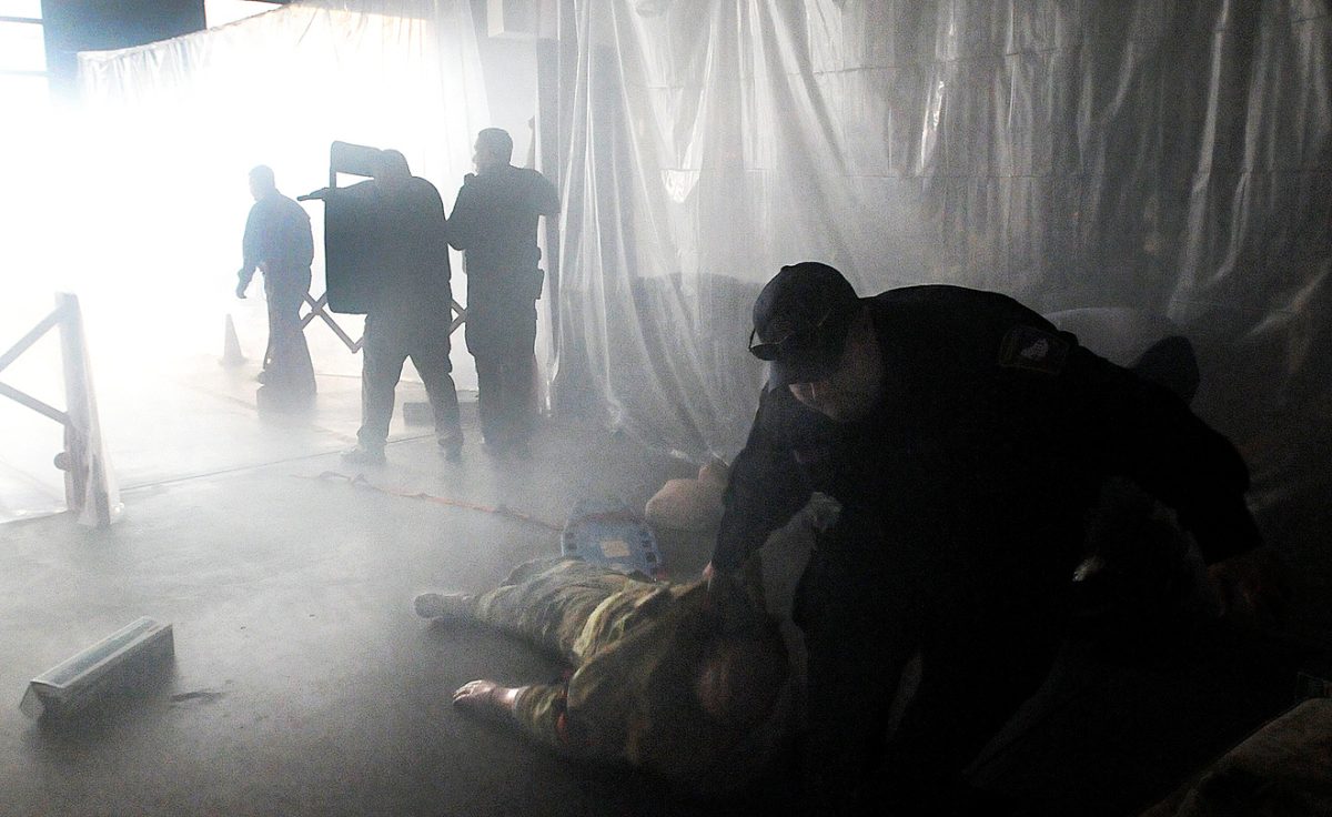 Skills practiced included identifying priority patients, patient movement techniques to transfer victims to safe locations and other techniques to assess and treat bleeding and breathing problems.