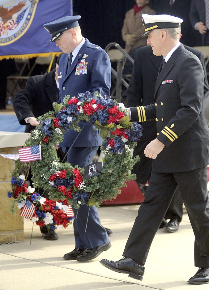 Also during the ceremony, the Canon-McMillan High School band played several selections, and students John Paul Gastone, Samantha White, Amber Antle and Trevor Arrigoni sang the national anthem. Kate Matthews, a bagpiper with the Department of Veteran Affairs, also performed.