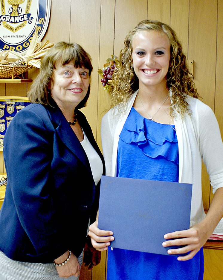 The grange’s Recognition Night included presenting a $500 scholarship award to 2013 West Greene graduate Jessica Black, who is now studying nursing at Waynesburg University and is part of the school’s track team.