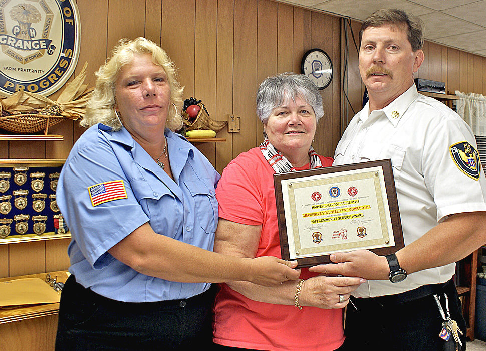 Harveys Aleppo Grange master Mary Jane Kent was beaming as she passed them out to members of Graysville Volunteer Fire Company No. 16 Monday. It was Recognition Night at the grange on Route 21 near Graysville and the hall was full of fire company fighters, auxiliary members and their families.