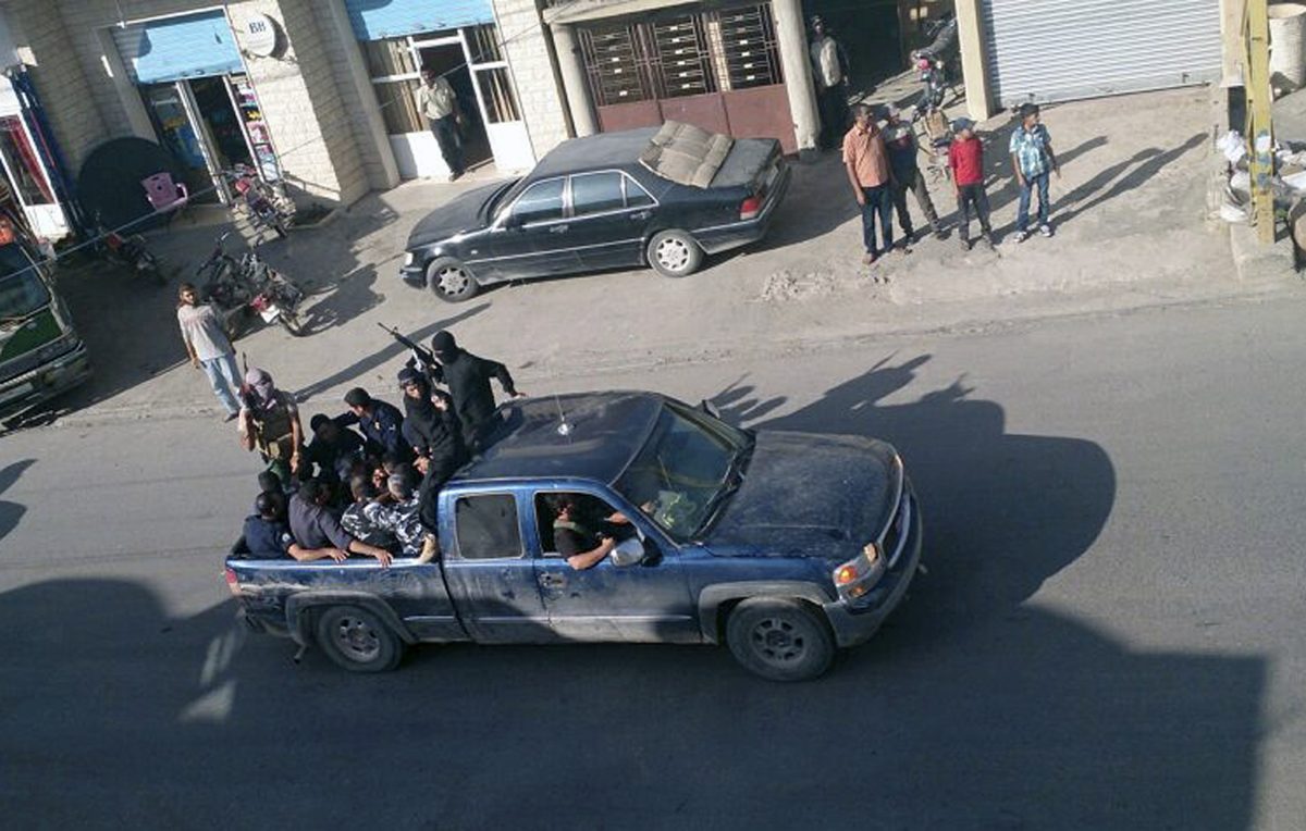 A picture posted online allegedly showed gunmen in Arsal driving away with about a dozen men, two of them in police uniforms. The photograph corresponded to other AP reporting about the attack.