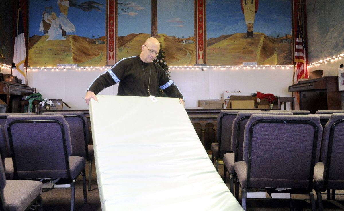 The mission averages between nine and 15 people housed on mattresses in its chapel overnight, but has had as many as 23.