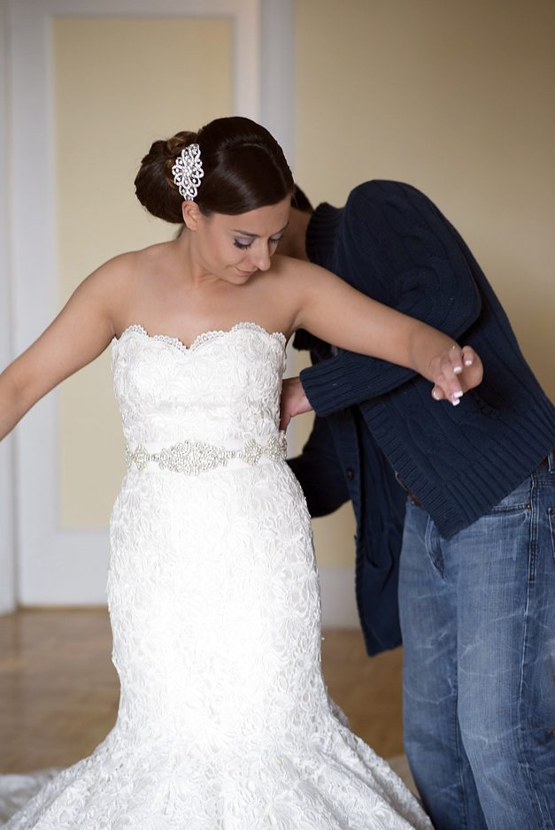 Beneath the surface, the wedding dress is composed of three separate gowns – all constructed by Brian.