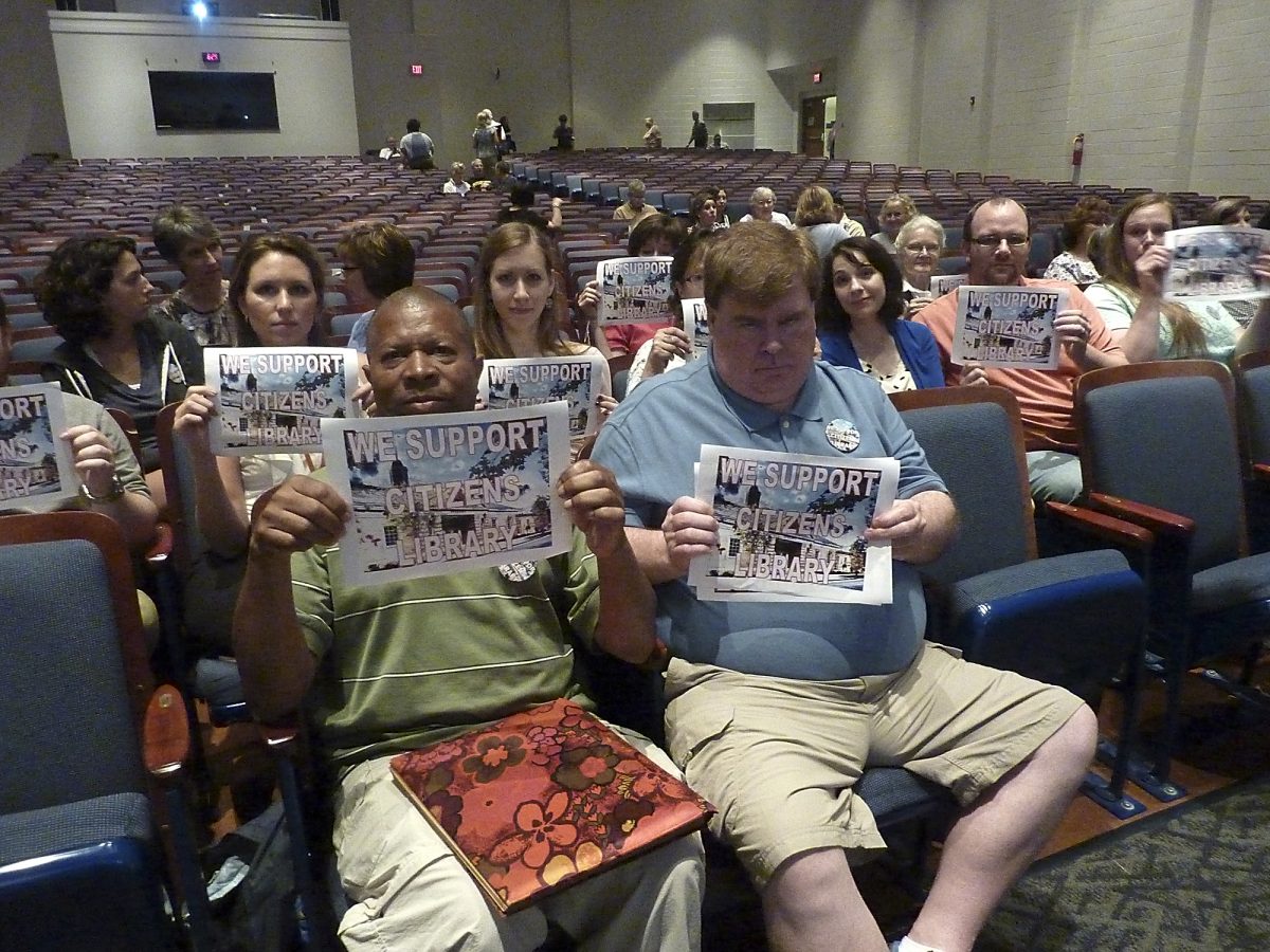 About 30 supporters of Citizens Library, including director Diane Ambrose, attended the meeting in the hopes the school district would not eliminate funding.