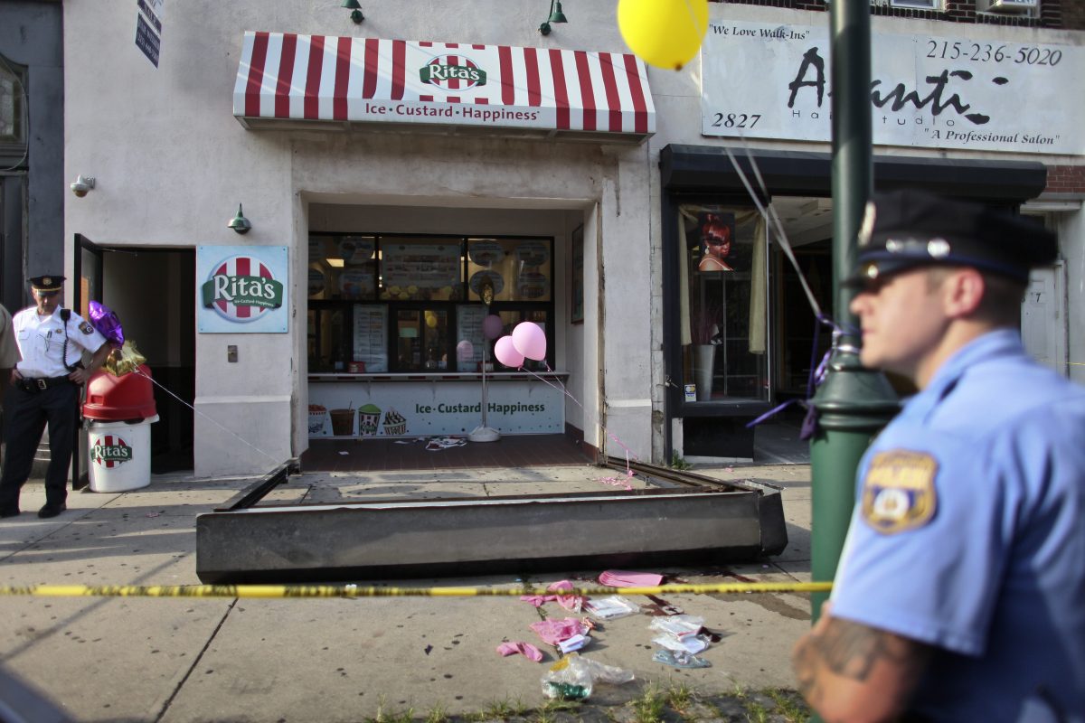 PHILADELPHIA (AP) – A metal security gate detached from the facade of an Italian ice shop Saturday afternoon, killing a 3-year-old girl, police said.