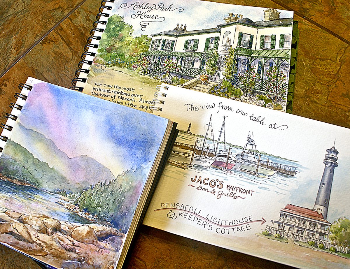 “My sketchbooks are a celebration of the everyday things of life, a way of remembering and appreciating the commonplace. Drawing helps me to slow down and see the beauty that’s right in front of me,” Fehling said. “When I sketch something, there’s a connection that’s created. Years later, I can look at a sketch and recall not only the place and time when I painted it, but also how I felt in that moment. The act of sketching is a form of meditation. Focusing intently on drawing or painting, my cares melt away and I lose all sense of time. It relaxes me and feeds my soul.”
