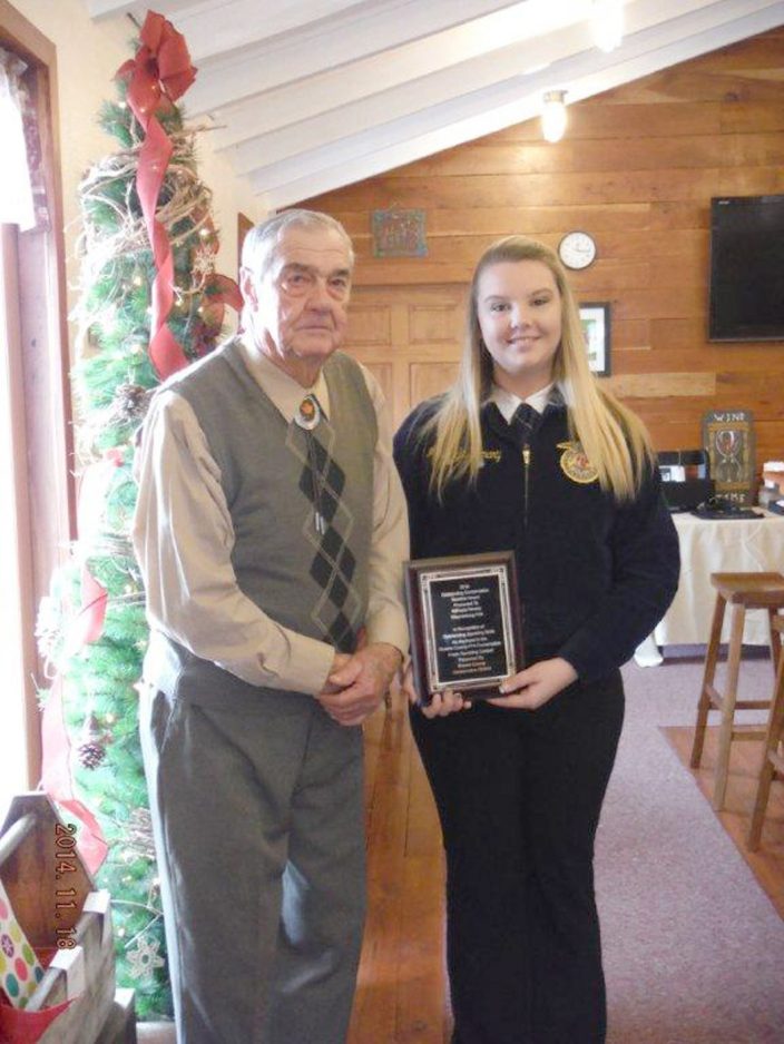• MaKayla Henary, a junior at Waynesburg Central High School, received the 2014 Conservation Speaking Award. Henary, an FFA member, was recognized for her outstanding speaking skills and achievement of winning the 2014 Greene County FFA speaking competition with her speech entitled “Fracking and Farming.” The speech focused on the Marcellus Shale natural gas industry and the environmental impacts that are made throughout the drilling process. Henary is the daughter of Jim and Kim Henary of Mt. Morris.