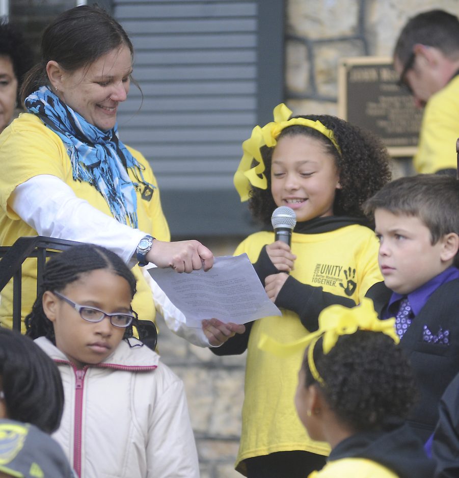 “I want to feel safe when I go to bed at night,” Caleigh Brown said. “Everyone wants to live in a great community, it would be so simple if everyone came together.” Brown and several other classmates from Washington Park Elementary read essays they wrote about “Building a Better Washington” for the “March for Peace” event. The March was organized by the CommUNITY group.