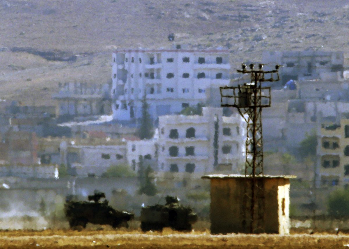 Turkey has warily watched the fight for Kobani unfold. On Monday, at least 14 Turkish tanks took up defensive positions on a hilltop on Turkish soil near the beseiged town, while a shell from the fighting struck a house and a grocery store inside Turkey, but no one was wounded.