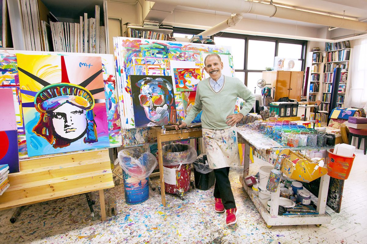 It’s just a few minutes after 1 o’clock in the afternoon and, from the sound of things, Peter Max’s studio is a bustling hive of activity.