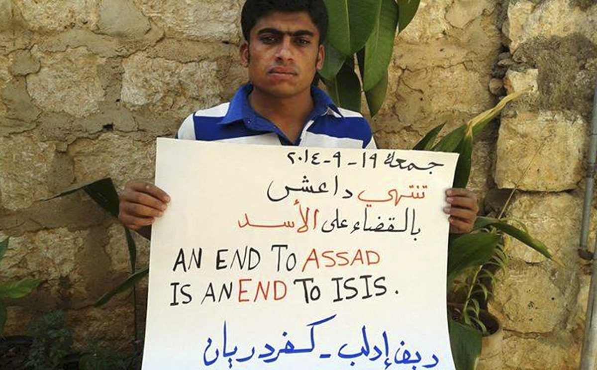 “The Nusra Front came to help us when the whole world abandoned us,” read one banner carried in the town of Maaret al-Numan, according to videos and photos of the protests posted online by activists. “America is shelling civilians and left the killer of civilians,” read a banner, referring to Assad, carried by a boy in the town of Maaret Musreen.