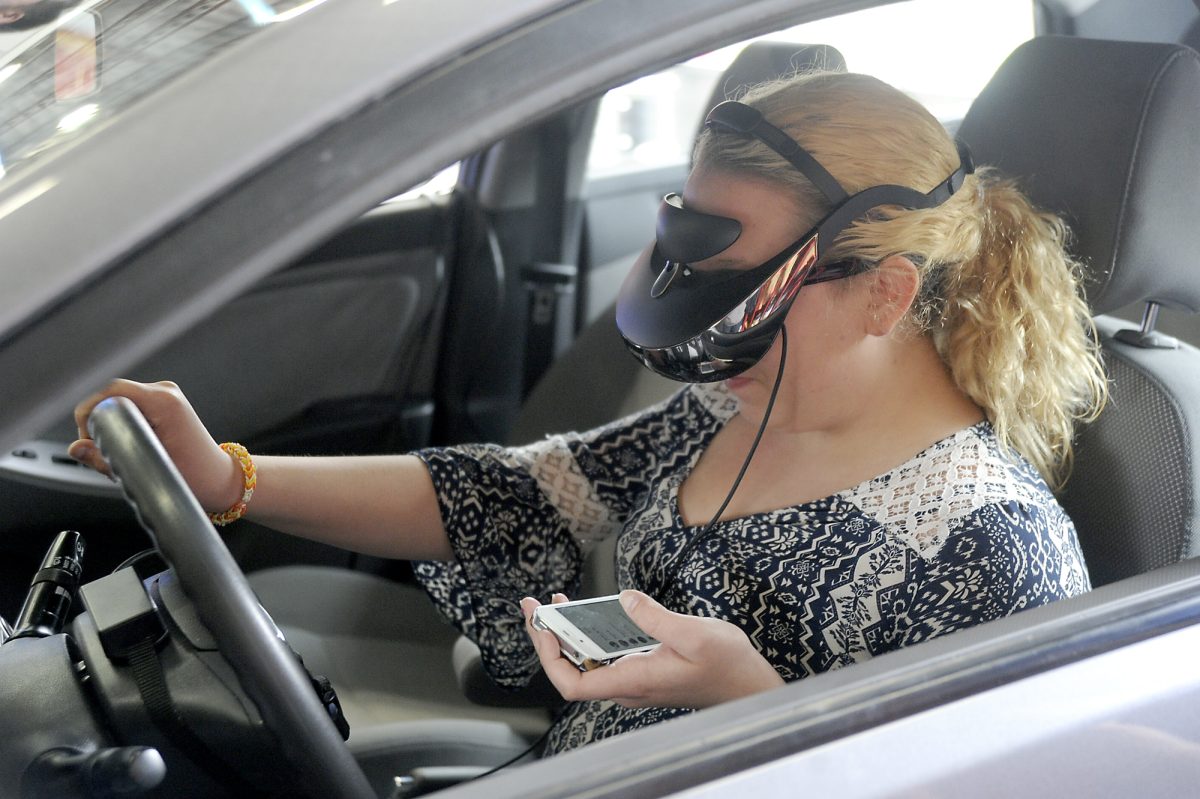 Barone and other young drivers got a chance to sit behind the wheel of a real car as part of the Aware TXT driving simulator. They were hooked up to a virtual reality headset that showed a road on a television screen. They operated the steering wheel and gas and brake pedals while using their own cellphone to text.