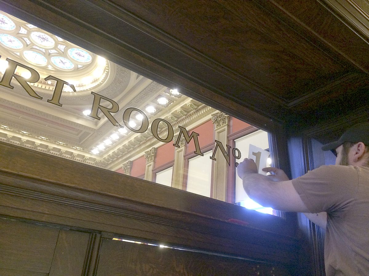 Patrick Grimm, court administrator, said the community service workers and building and grounds staff were instrumental as they simultaneously moved DiSalle and the senior judges’ chambers. Since January, DiSalle has been using courtroom 2, formerly O’Dell Seneca’s courtroom, and the senior judges have been using DiSalle’s former courtroom, Courtroom 3. While the renovations were ongoing, DiSalle remained in his former chambers and the law library on the second floor was converted into a temporary office for the senior judges.