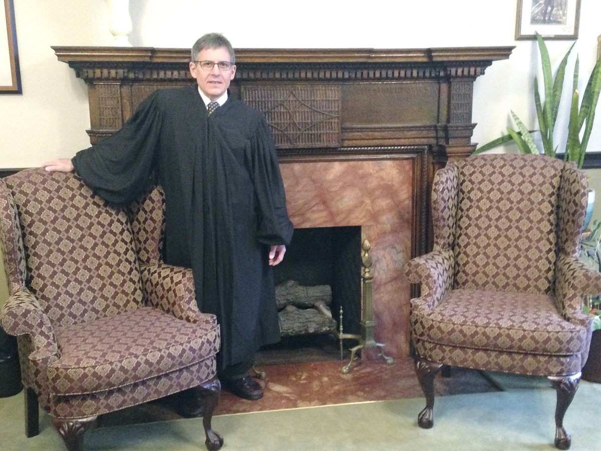 Unpacked boxes sit neatly stacked on a desk inside Washington County Judge John F. DiSalle’s new office. Framed pictures, maps and animal mounts are hung throughout the chambers. A bear skin, which has yet to find a permanent home, is strewn across an empty desk that blocks a majestic fireplace.
