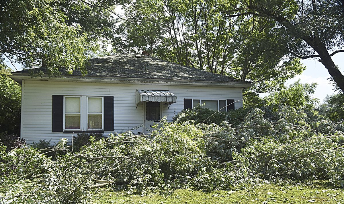 The front of a home at 727 Jolly School Road in South Franklin Township is covered in branches from a tree that came down during a storm Monday evening.